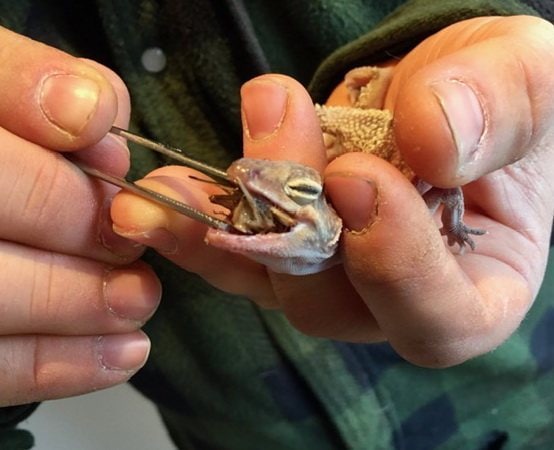 Lurchi wird nun gebadet, damit es ihm leichter fällt, sich zu häuten und er bekommt Fressen eingegeben. Hoffentlich berappelt sich unser kleiner Freund wieder…