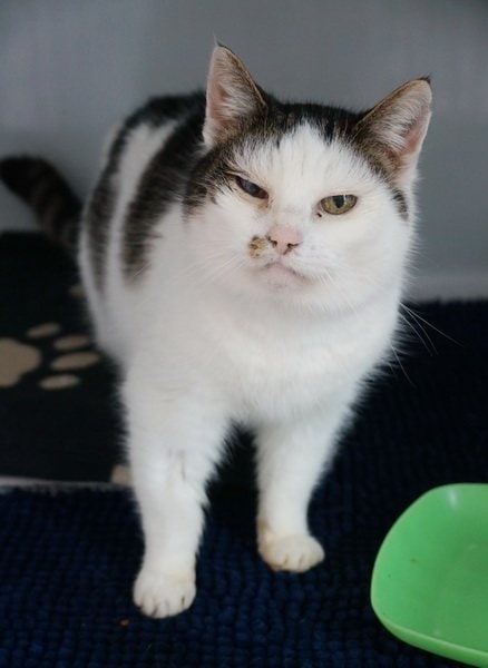 Katzenkind Froschi hat sich in der Katzengruppe einen Schnupfen eingefangen. Er wurde in die Krankenstation umgesetzt, wo seine juckenden Ohren weiterbehandelt werden und nun auch mit Medikamenten und Inhalieren gegen seinen Schnupfen gekämpft wird. Dem kleinen Mann ist das alles viel zu langweilig – aber nützt ja nix! ;-)