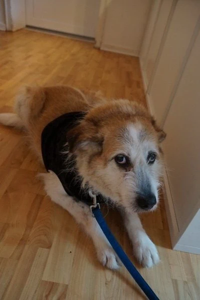 Unser alter Oscar hatte einen dicken Knubbel an der Schulter, der sich wie ein Lipom (Fettansammlung) anfühlte. Vorgestern ist er plötzlich aufgegangen und Oscar hatte eine riesige offene Wunde. Es handelte sich anscheinend um eine alte Bissverletzung, die sich unter der Haut entzündet hatte und jetzt aufgeplatzt ist. Natürlich sind wir gleich zum Notarzt gefahren (sowas passiert ja immer am Wochenende) und die Wunde wurde erstmal gespült und sauber gemacht. Am nächsten Morgen sind wir dann sofort zu unserem Hausarzt gefahren und haben die Wunde nähen lassen. Jetzt muss Oscar einen Body tragen und wird jeden Tag wundversorgt… Findet er so mäßig toll ;-)