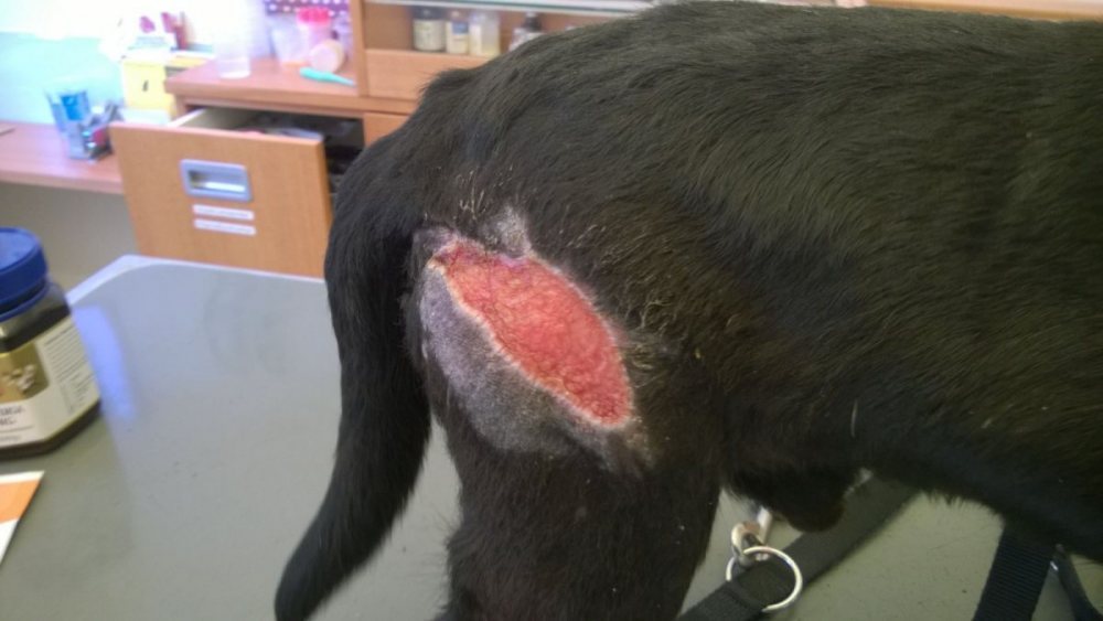 Die Arbeit und Liebe (von Oma Erika ;-)) haben seine Wirkung gezeigt und Pelles Wunde sieht schon super gut aus. Ab heute braucht er nur noch alle zwei Tage zum Verbinden gebracht werden. Das entlastet uns natürlich sehr und Pelle auch – der die Prozedur immer weniger gerne über sich ergehen lässt.