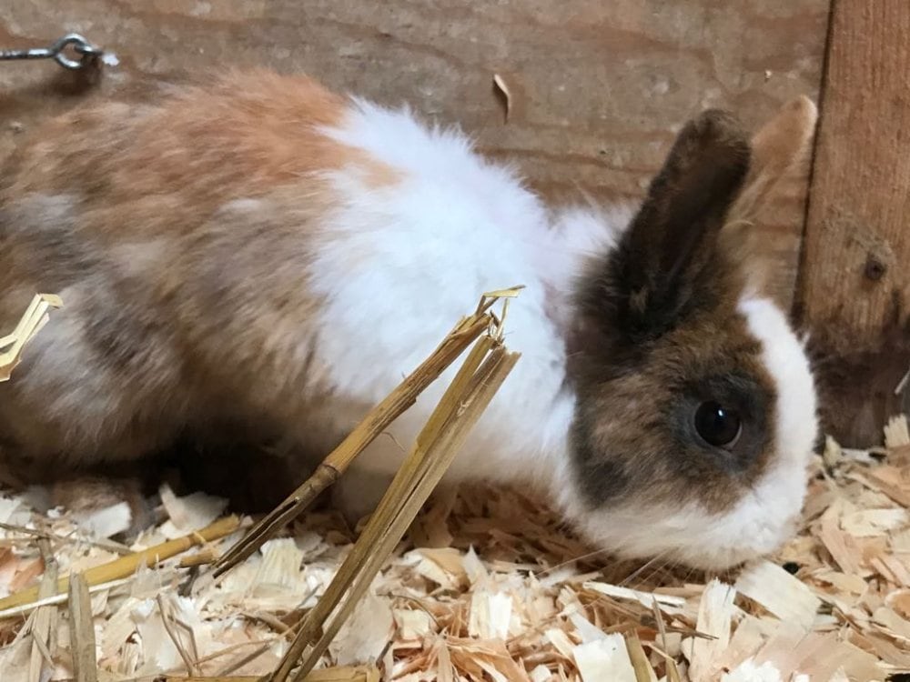 Kaninchenjunge Petzi hat sich wohl ein bisschen länger draußen herumgetrieben. Mit kahlen Stellen und tüchtigem Juckreiz kam er zu uns. Der Tierarzt bestätigte, dass er Milben hat und nun wird Petzi fleißig behandelt – damit er schon ganz bald Kaninchengesellschaft bekommen kann.