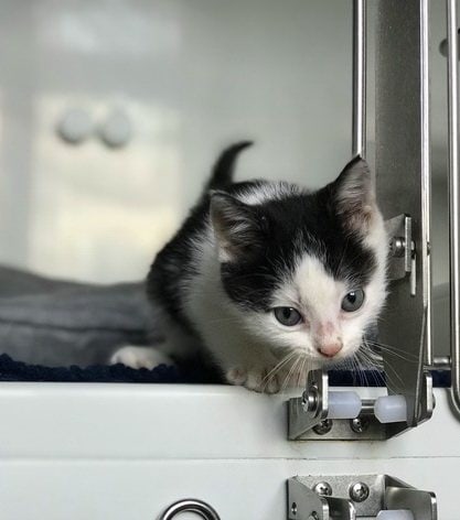 Der kleine Katzenwelpe Pfifferling wurde als Fundtier abgegeben. Bei der Erstuntersuchung stellte sich heraus, dass der kleine Mann sich mit einer Pilzinfektion angesteckt hat. Er muss deshalb nun in der Quarantäne sitzen, bekommt Medikamente und wir drücken die Daumen, dass er schnell wieder gesund wird.