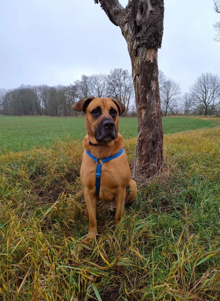 Balu beherrscht die gängigen Grundkommandos und reagiert ruhig auf Fahrradfahrer und Jogger. An der Leine geht er entspannt und der Rückruf funktioniert schon sehr gut.