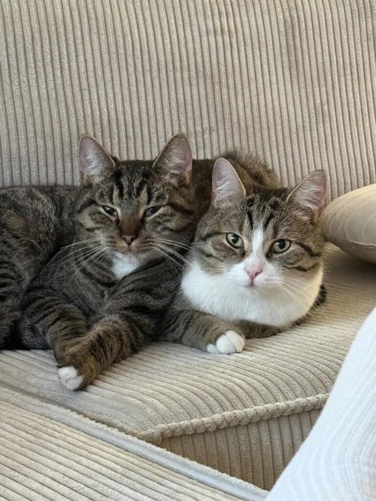 Beide sind Freigänger und recht aktiv, halten sich aber auch gerne in der Wohnung auf. Sie spielen viel miteinander und können sich so auch sehr gut miteinander beschäftigen, sind aber auch sehr offen für lange Streicheleinheiten.