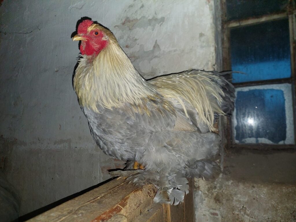 zur Vermittlung stehen vier einjährige Brahma Hähne und zwei ebenfalls