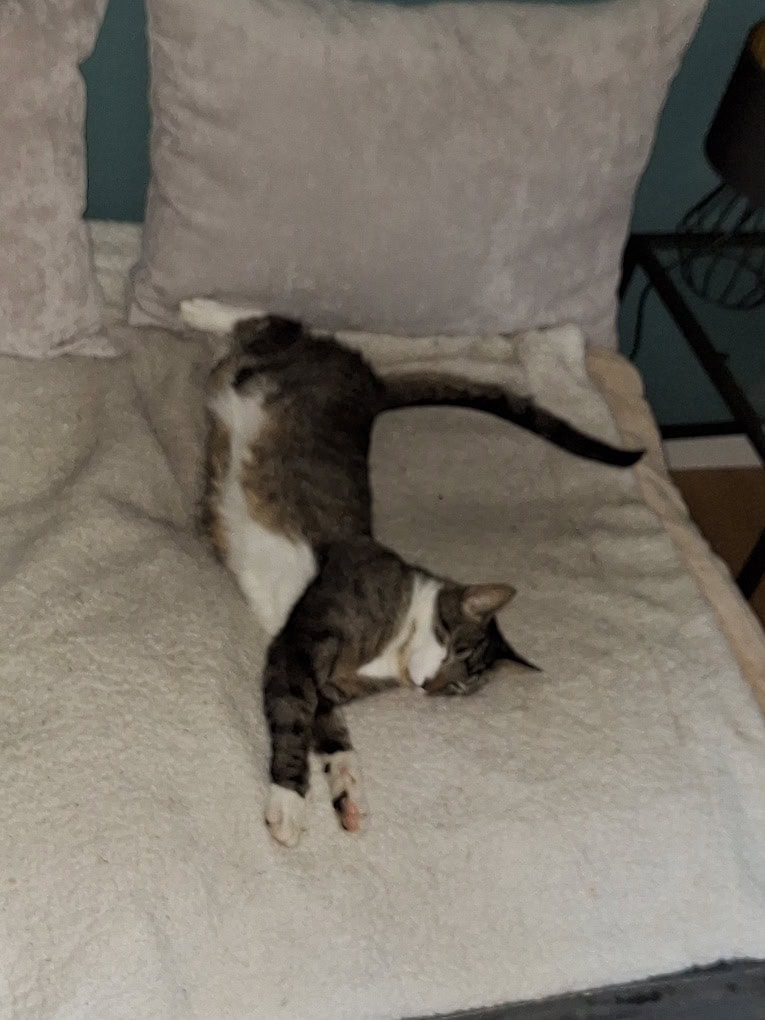 Er ist Freigänger, kommt aber regelmäßig zum Fressen und Pause machen ins Haus. Er genießt es, alleine die Aufmerksamkeit zu bekommen und hat zwei feste Schlafplätze bei uns im Haus. Dabei mag er gerne gekrault werden oder spielt mit uns zusammen mit seinem Katzenspielzeug. Im Sommer ist er viel draußen, im Winter eher nur zum Luftschnappen bzw. zum Pinkeln. Bobby hat keinerlei Unverträglichkeiten oder Erkrankungen. Er ist ein kräftiger Zeitgenosse, der ab und zu etwas tollpatschig wirkt, aber sehr liebevoll ist.