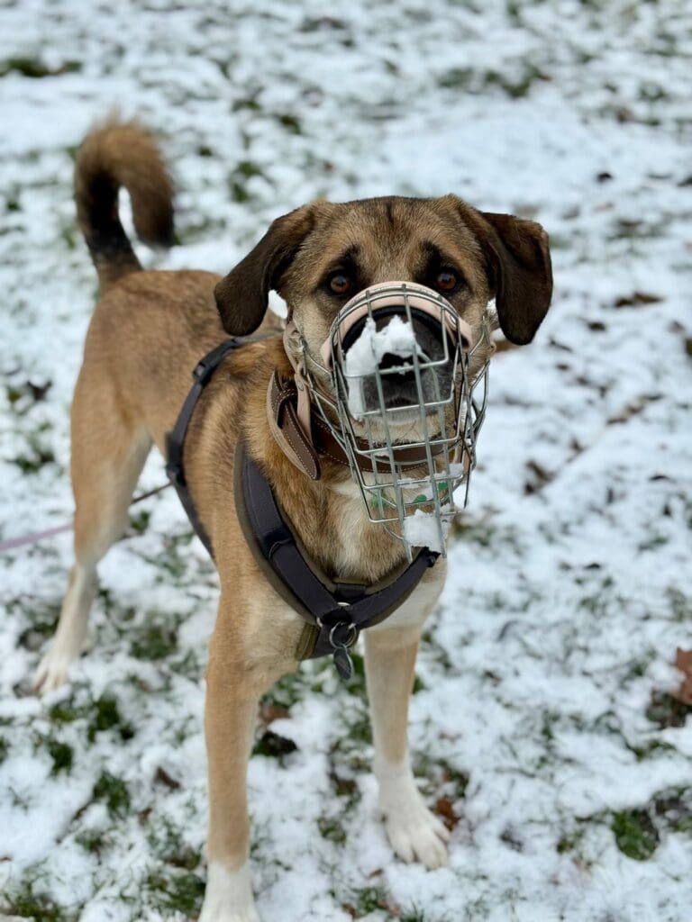 • Autofahren ist ok; Maulkorb trägt er stressfrei, wenn nötig