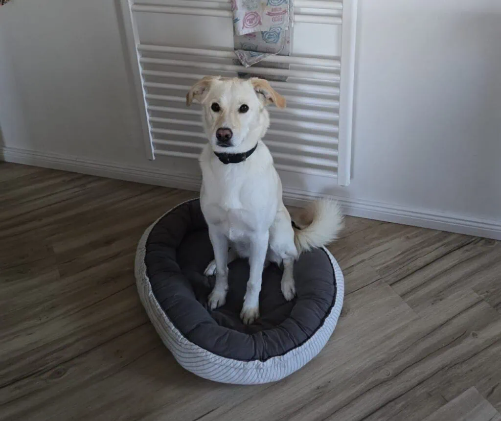 Seinen Platz teilt er nicht so gern, da braucht er noch etwas Training.