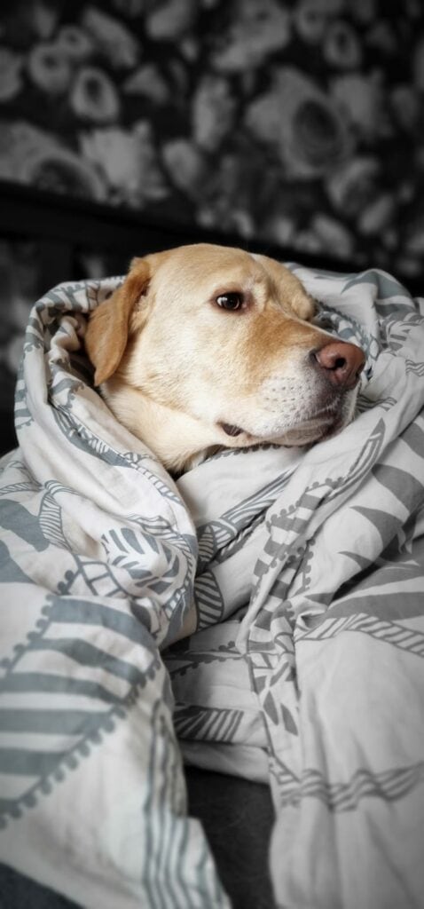 Am liebsten liegt er auf dem Sofa, zwischen seinen Lieblingsmenschen. Möchte er seine Ruhe, geht er einfach auf seine Decke.