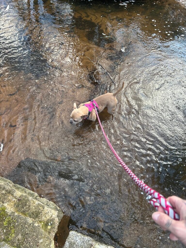 Sie kann alleine bleiben, nutzt ihre Hundebox zuverlässig und ist bei Hundebegegnungen – mit Anleitung – gut händelbar. Angst machen ihr vor allem Gewitter, Sturm und starker Regen.
