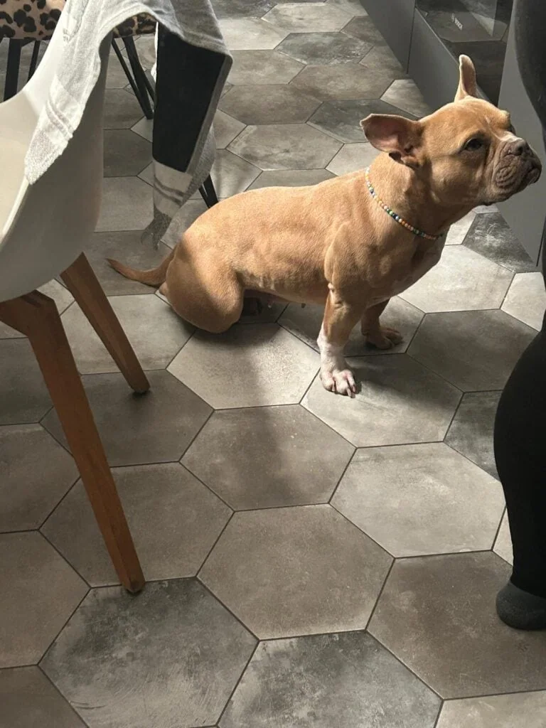 Nicoleta wurde laut Pass am 04.07.2023 geboren, ist ca. 38 cm hoch und wiegt etwa 17 kg. Als Rasse ist eine Französische Bulldogge eingetragen, vermutlich mit American-Bulldog-Anteil. Sie wurde in Spanien von der Straße gerettet und anschließend nach Deutschland vermittelt. Dort wohnte sie einige Wochen in einer Pflegestelle mit 4 Galgos.