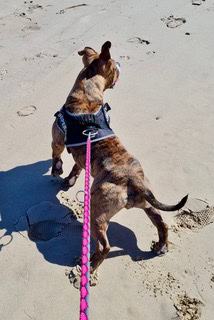 Wie lebt das Tier bei Ihnen, was ist es gewohnt?: Peanut lebt seit ihrer Geburt in der Familie. Sie ist mit Kindern und Katzen aufgewachsen. Die Katzen möchte sie allerdings immer jagen. Peanut kann 4–5 Stunden alleine bleiben. Sie ist stubenrein und liebt es im Auto mitzufahren. Peanut lebt in 26919 Brake.