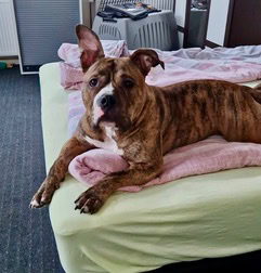 Rasse: Mischling aus Old English Bulldogge (Vater) und Pocket Bully (Mutter)