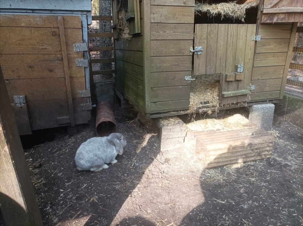 Zusammen mit vier Weibchen und vier kastrierten Böcken leben die beiden auf einer 25 m² großen Fläche im Freien. Sie kennen ausschließlich frisch gepflückte Wiese, Salate, Gemüse, Kohl und natürlich Heu.