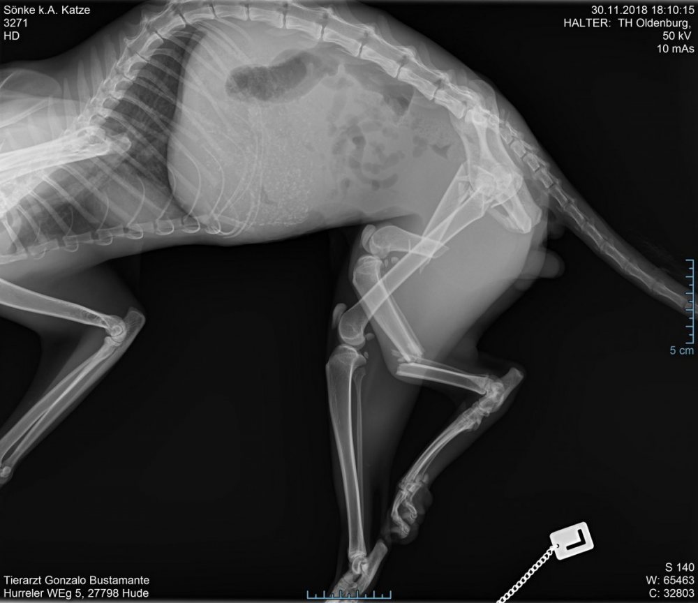 In der Praxis legte man mich sofort in Narkose und beim Einschlafen hörte ich noch, wie die Tierärztin sagte, dass man mein Bein eigentlich gar nicht röntgen bräuchte… es sei komplett zerquetscht und kein Knochen wäre mehr an der richtigen Stelle.