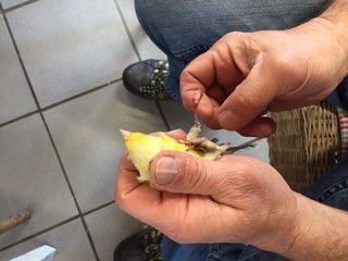 Der Tierarzt hat Struwelpeters Beinchen für gut befunden und ihm gaaanz vorsichtig die Schiene abmontiert ;) Der kleine Piepmatz kann nun wieder ordentlich durch die Voliere hopsen und seinem Kumpel das Fliegen beibringen…
