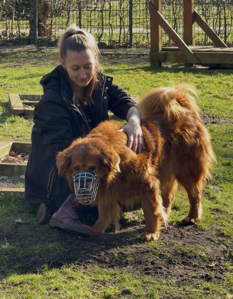 Wenn er jemanden mag, lässt er sich problemlos anfassen – fremde Leute dürfen das aber nicht einfach so, deshalb wurde er u.a. für tierärztliche Untersuchungen an den Maulkorb gewöhnt.