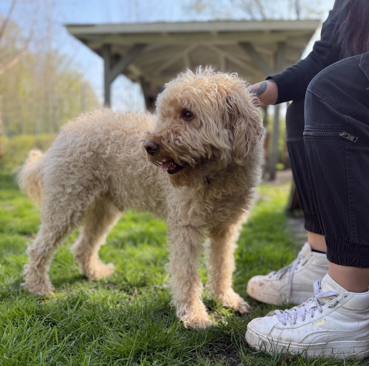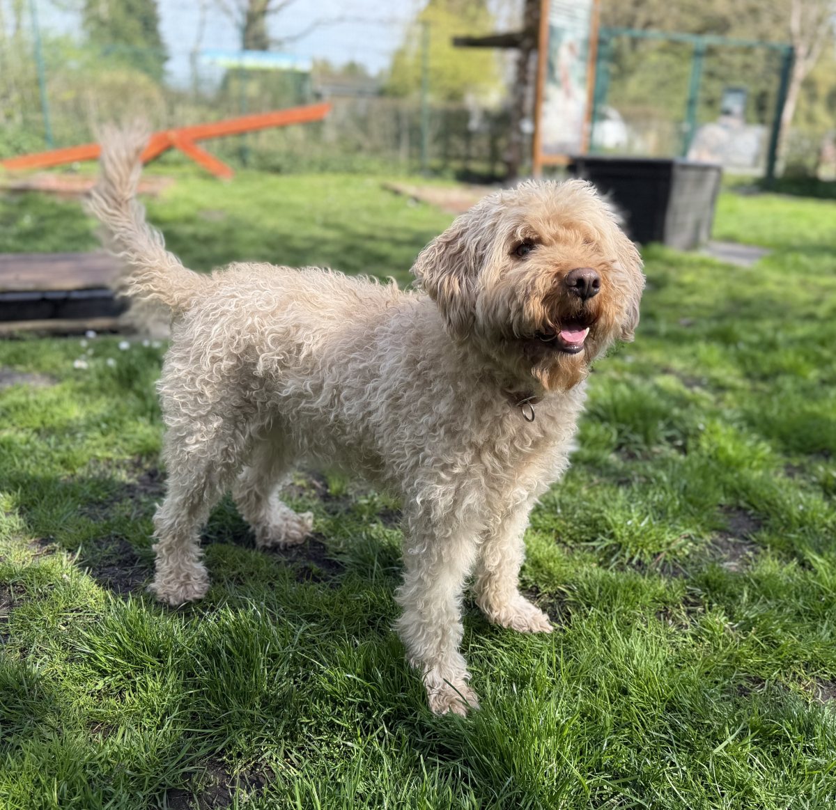 Aufgrund seines fusseligen Fells braucht Hugo regelmäßige Fellpflege.