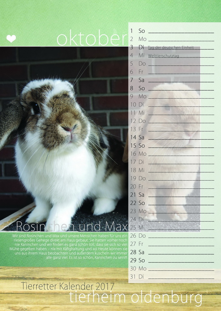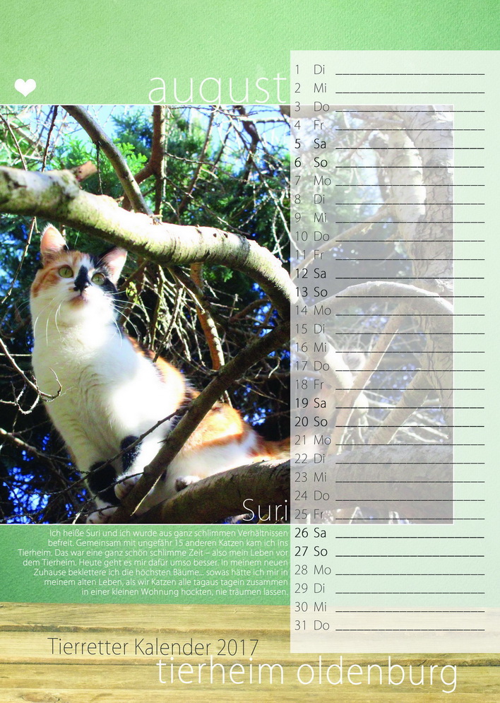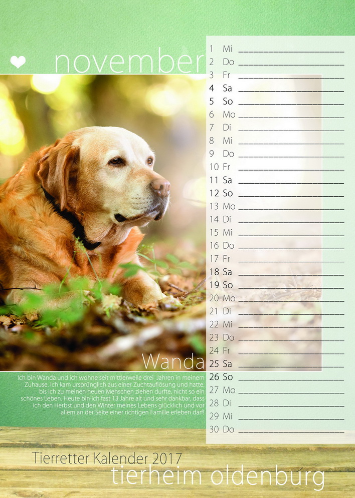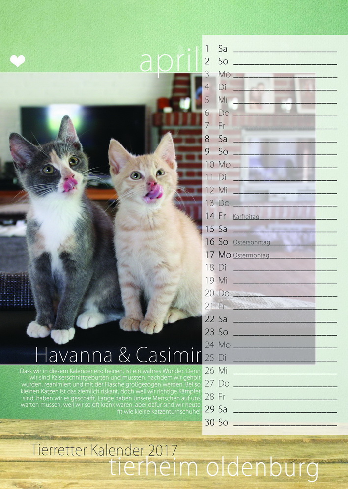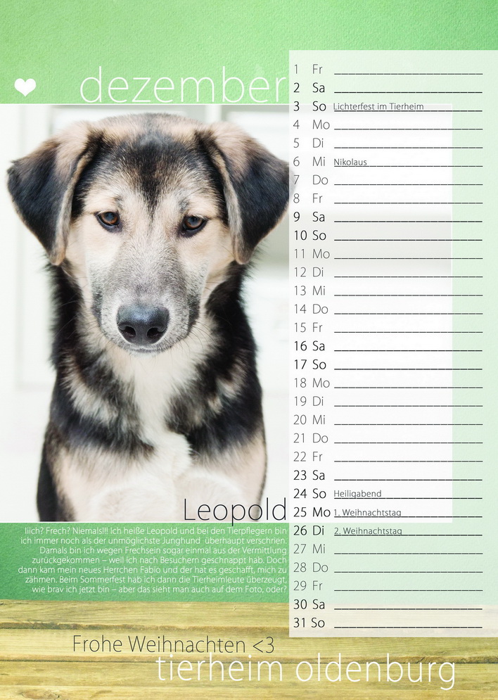Nach dem ihr eure Wohnung mit einem schönem Kalender aufgehübscht habt, kauft ihr noch schnell für alle Bekannten einen und habt endlich ein wirklich schönes und sinnvolles Weihnachtsgeschenk, bei dem man gleichzeitig den Tierheimtieren hilft. Danke <3