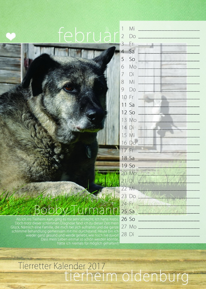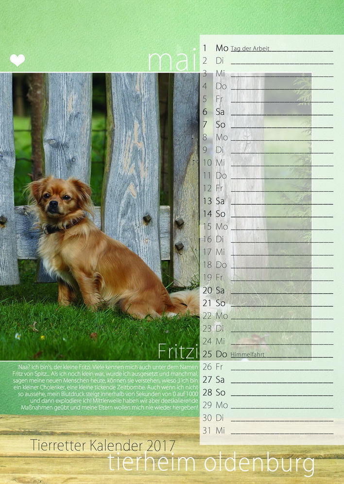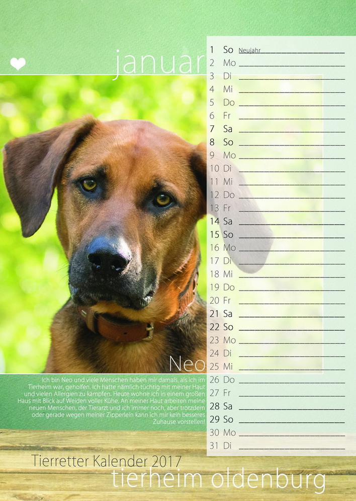 Ab sofort ist unser neuer Kalender zum Preis von 6 € im Tierheim und in weiteren Verkaufstellen (Infos folgen) erhältlich..