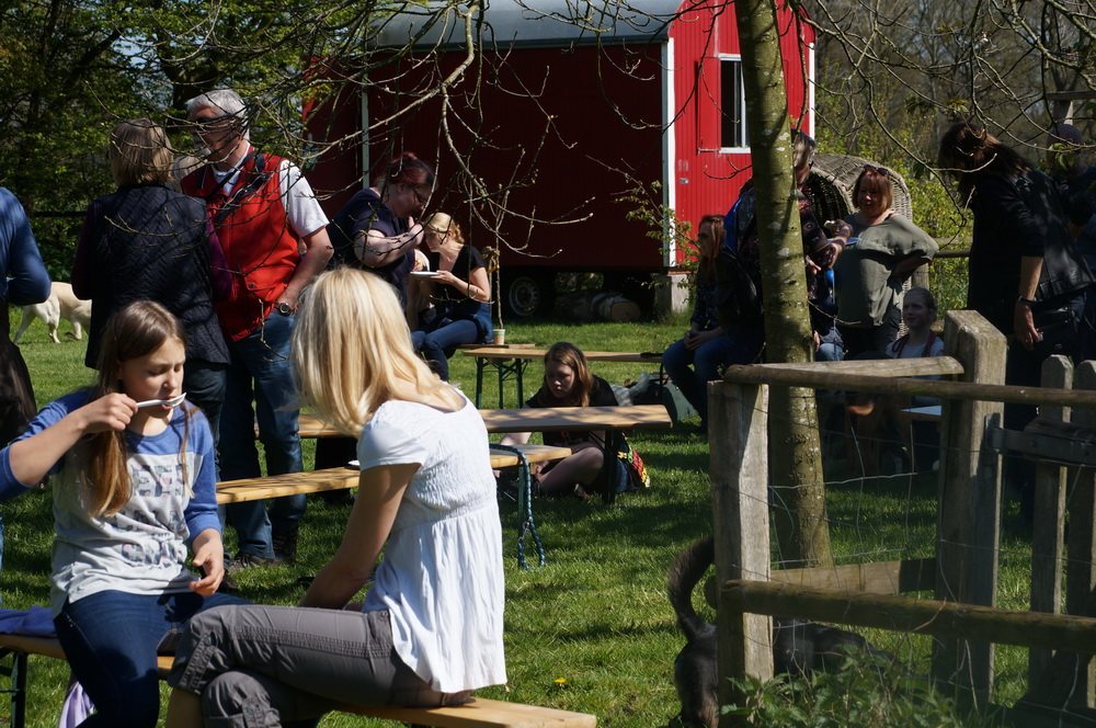 Und es war super schön, so viele unserer ehemaligen Schützlinge wiederzusehen… Insgesamt sind wir mit über zwanzig Hunden losgezogen und bei bestem Wetter quer durch´s Moor gelaufen. Beim Zwischenstop bei Oma Erika auf einem Traumgelände (eingezäunt ;-)) haben wir es uns bei Kaffee & Kuchen so richtig gut gehen lassen!