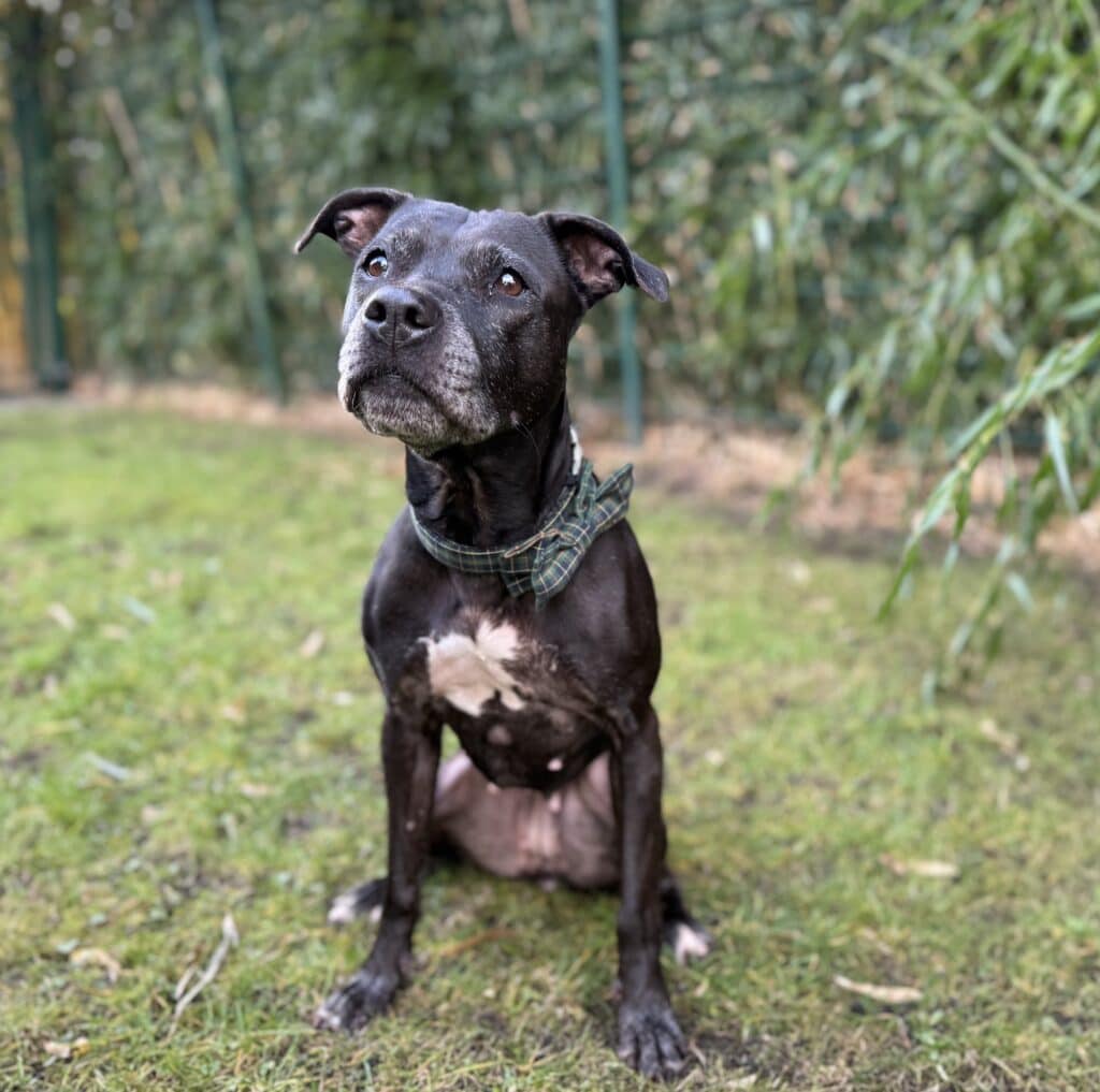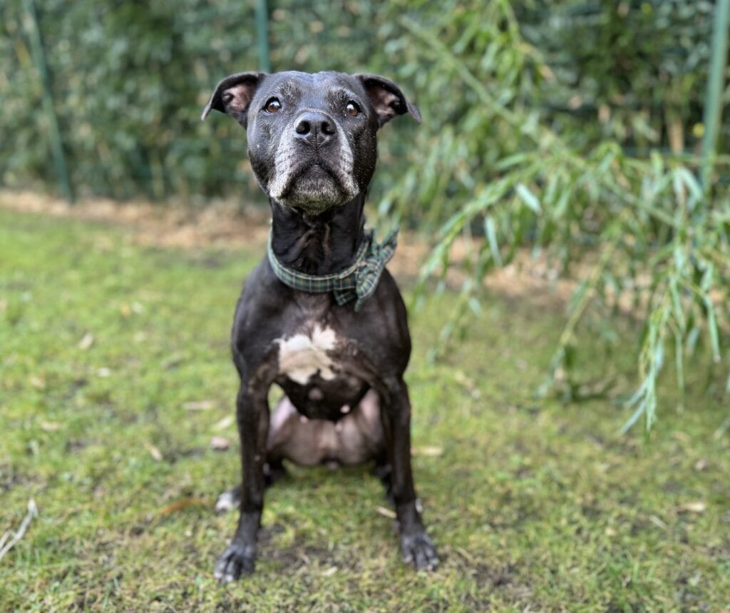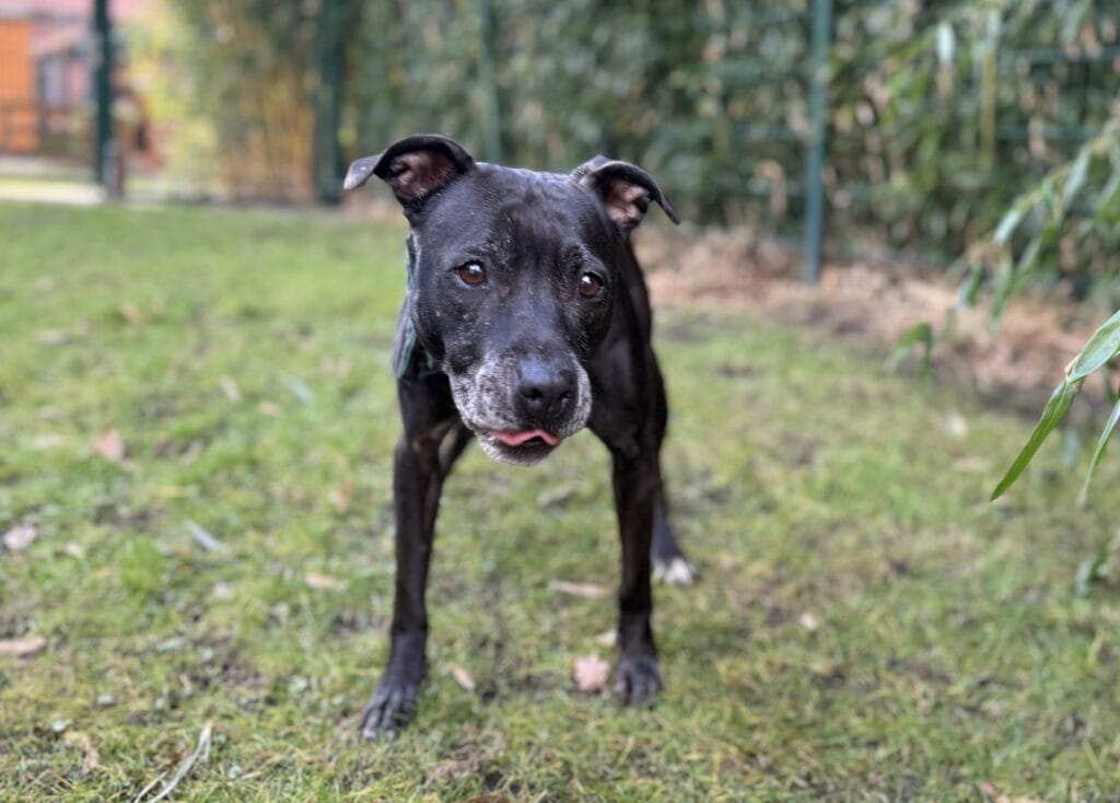 Pearl, die neunjährige Pitbullhündin, lebt seit knapp drei Monaten bei uns.