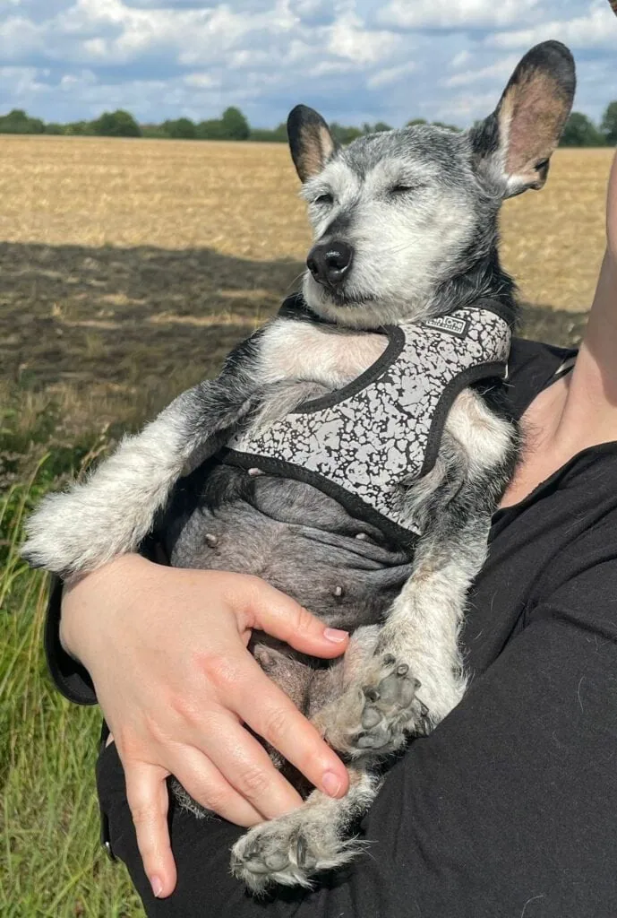 Weil Nikki schon eine 15 Jahre alte Omi ist, möchte sie ein ebenerdiges Zuhause mit eingezäuntem Garten bewohnen. Sie liebt es, draußen in der Sonne zu sitzen und zu schnüffeln. Abends liegt sie im Idealfall auf dem Schoß und wird in den Schlaf gestreichelt – unsere Prinzessin schnarcht übrigens herzhaft.