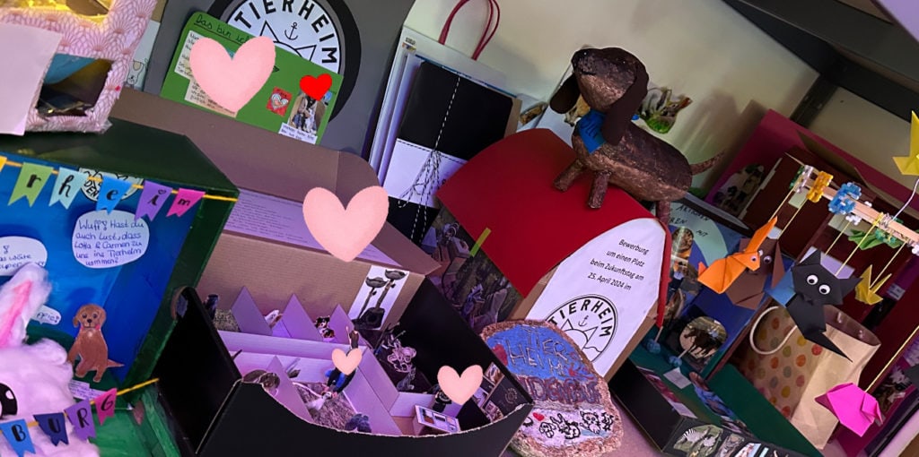 Uns haben unendlich viele wunderschöne Bewerbungen für den Zukunftstag erreicht. Wir sind wirklich sprachlos, wie viel Mühe ihr euch gegeben habt, um einen Tag bei uns im Tierheim zu verbringen. Auf dem Foto ist nur ein ganz kleiner Teil der Kunstwerke zu sehen, die wir in den nächsten Tagen sortieren werden. Weil ihr euch so verausgabt habt und wir uns, vor lauter Schön- und Süßheit, überhaupt nicht entscheiden können, werden wir unter den Tollsten Bewerbungen auslosen müssen.