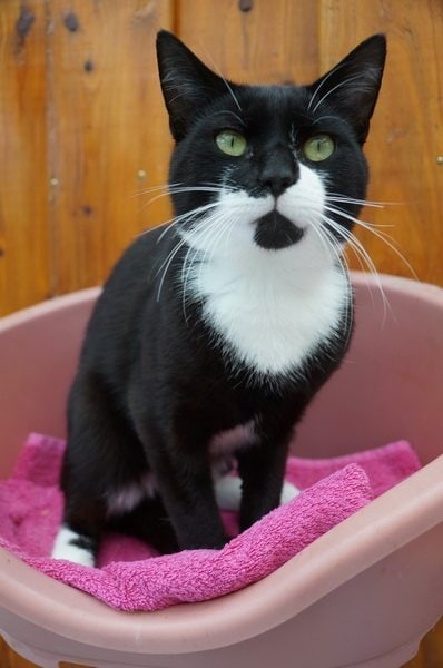 Kater Vossy hat einen sogenannten „Wildfleischwuchs“ am Bein, der operativ entfernt werden muss. Nach der OP – die gut verlaufen ist – bekommt er nun noch Antibiotika und Schmerzmittel, damit er trotz der Wunde gut klettern und laufen kann. Brav wie er ist, knabbert er nicht mal an den Fäden. Nun fehlt zu seinem Glück nur noch ein neues Zuhause! :-)